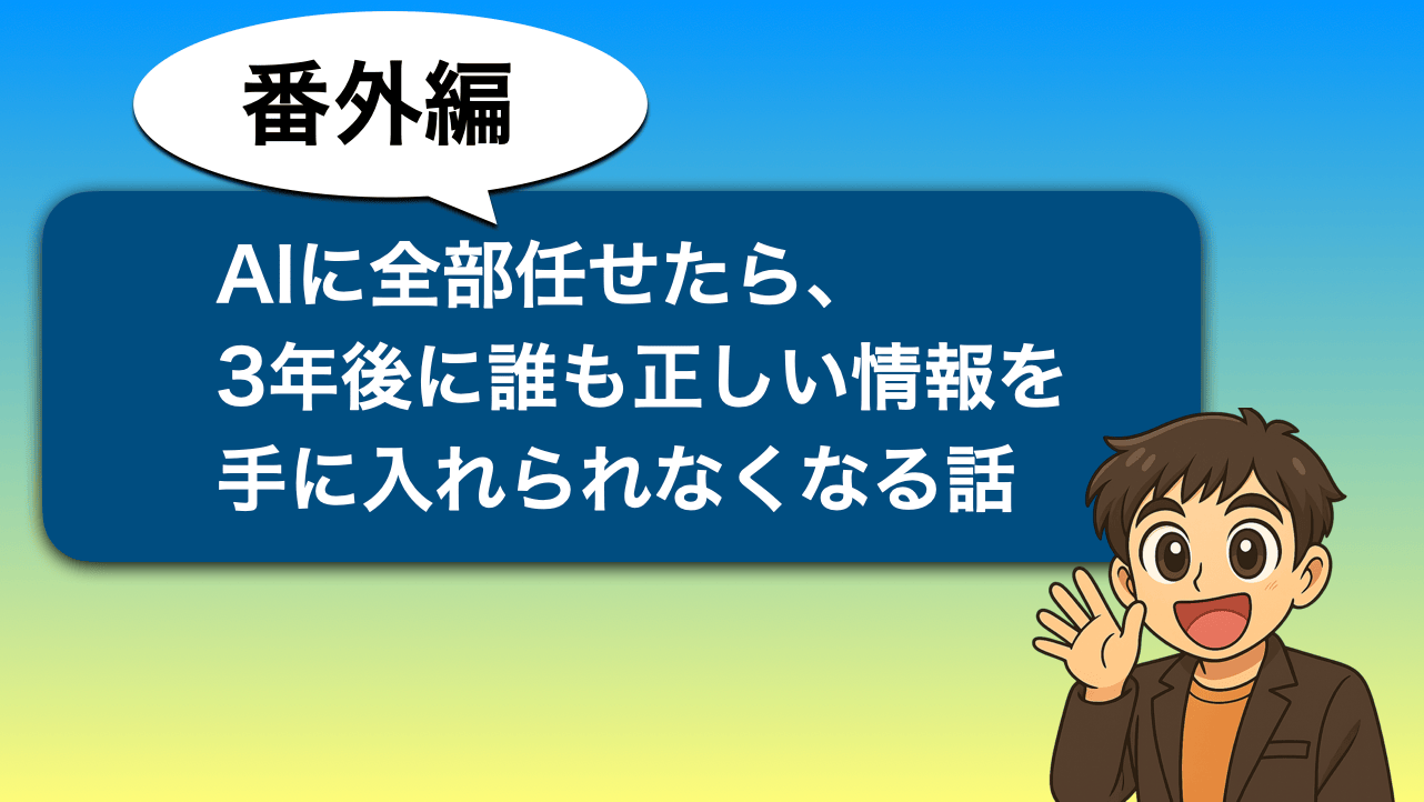 「もうホームページはいらない??」AIに全部任せたら、3年後に誰も正しい情報を手に入れられなくなる話!! 2025年12月4日2025年12月4日 こんにちは、フリーランスひかるです。 最近、クライアントさん…