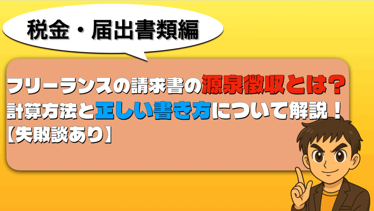 フリーランスの請求書の「源泉徴収」とは?計算方法と正しい書き方について解説!【失敗談あり】 2025年8月26日2026年3月11日 はじめに こんにちは。フリーランスひかるです。請求書を送った…税金・届出書類 編