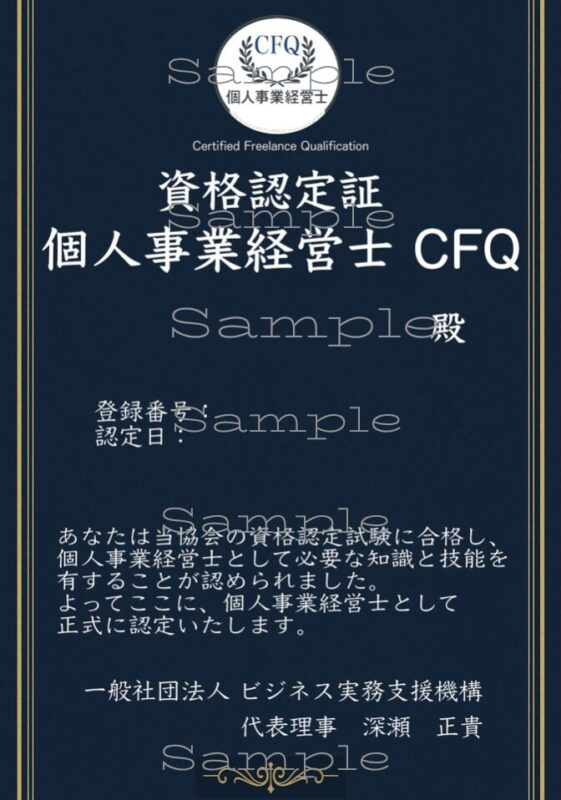 合格者には、「個人事業経営士CFQ」の認定証(デジタル版)が発行されます。