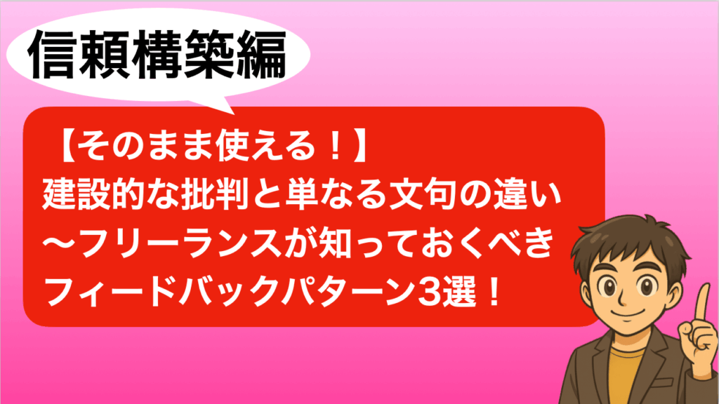 適切なフィードバックのやり取りは、プロフェッショナルな関係を築く基盤になります。「この人は話が通じる」「一緒に仕事がしやすい」と思ってもらえれば、継続案件や紹介案件につながります。
