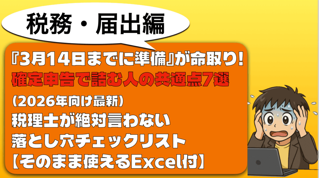 記事の最後に、私が実際に使っている「確定申告チェックリスト(Excel)」のダウンロードリンクを用意しました。これを使って、2月末に一度チェックしてみてください。