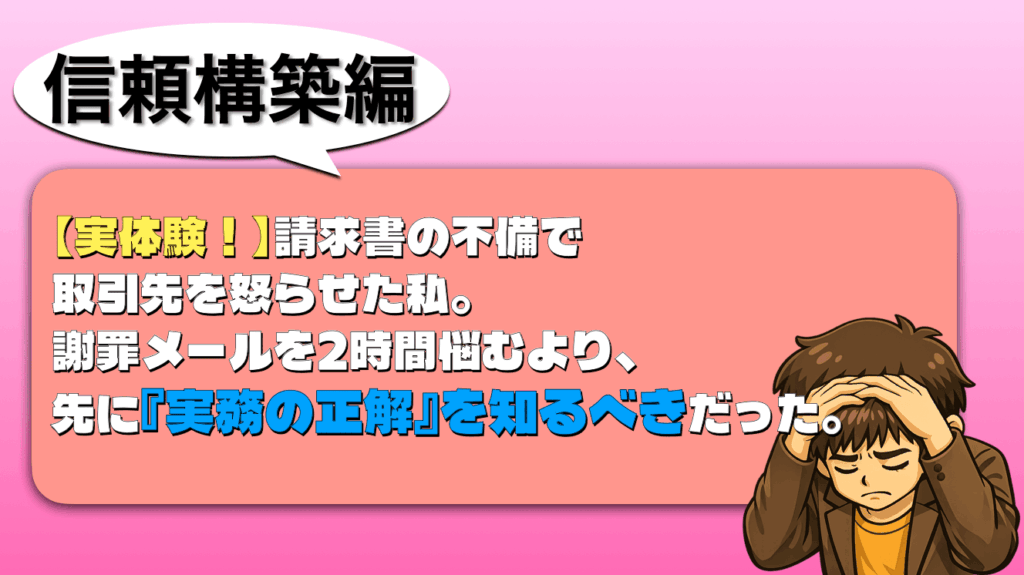 請求書のミスで誰かを困らせてしまったとき、一番つらいのは「どうすればよかったのか」がわからないまま謝り続けることだと思います。