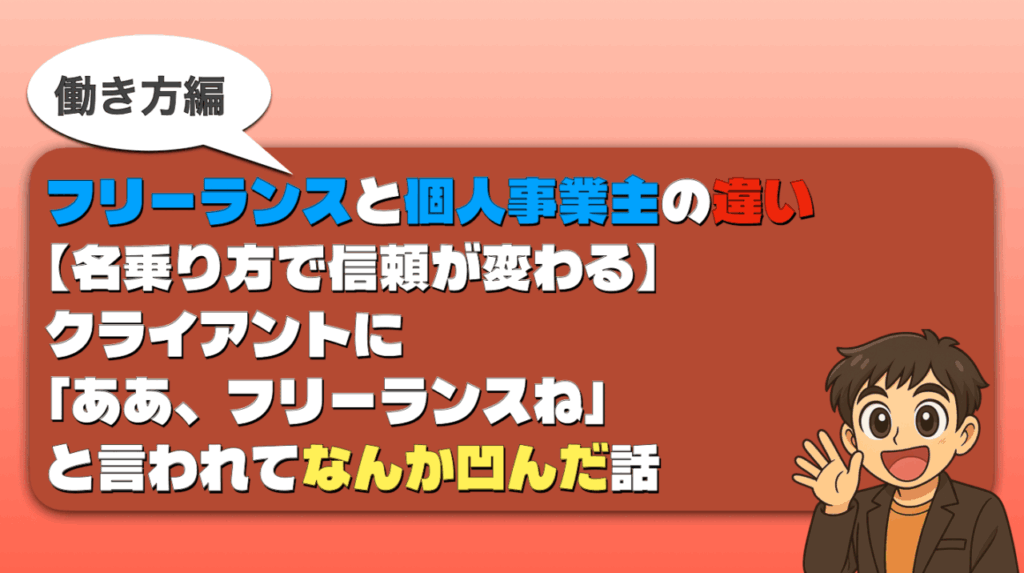 実は、この2つをなんとなく同じものとして使っていると、クライアントの面談で思わぬ損をすることがあります。私自身、独立してしばらくは「個人事業主です」と名乗ってクライアントに印象づけようとしていたんですが、ある日あっさり「ああ、フリーランスね」と流されて、なんかモヤっとした経験があります(笑)。