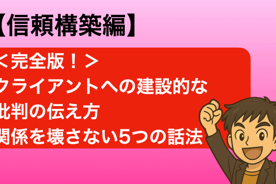 こんにちは。フリーランスひかるです。 クライアントから届いたメッセージ… 続きを読む »【完全版】クライアントへの建設的な批判の伝え方|関係を壊さない5つの話法