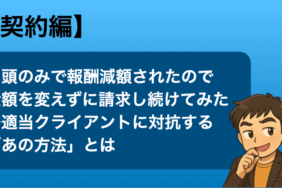 こんにちは。フリーランスひかるです。 あなたは突然、クライアントから「… 続きを読む »口頭のみで報酬減額されたので、金額を変えずに請求し続けてみた~適当クライアントに対抗する「あの方法」とは
