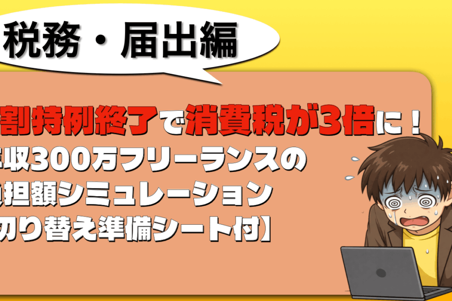 2割特例終了で消費税が3倍に!年収300万フリーランスの負担額シミュレーション【切り替え準備シート付】