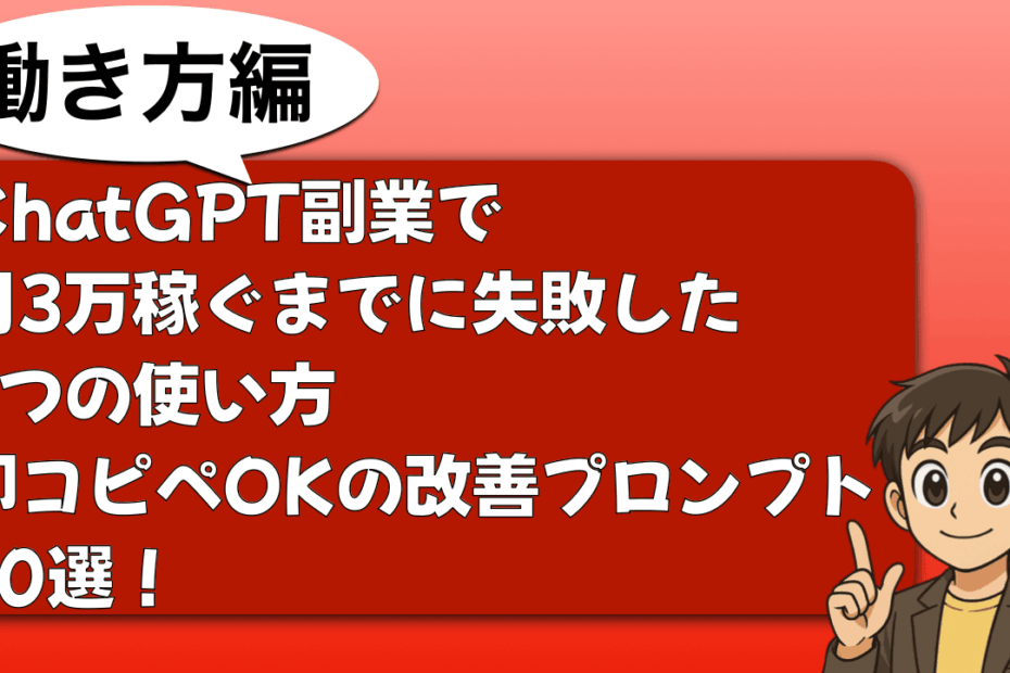 こんにちは。フリーランスひかるです。 「ChatGPT使えば副業で稼げ… 続きを読む »ChatGPT副業で月3万稼ぐまでに失敗した7つの使い方|即コピペOKの改善プロンプト30選!