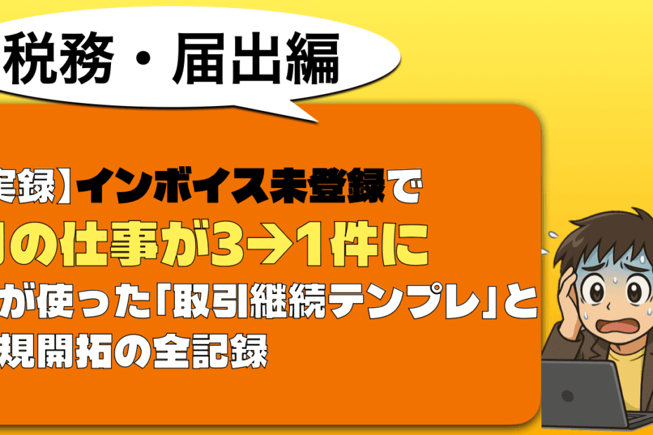 こんにちは。フリーランスひかるです。 2023年10月にインボイス制度… 続きを読む »【実録】インボイス未登録で月の仕事が3→1件に!私が使った「取引継続テンプレ」と新規開拓の全記録