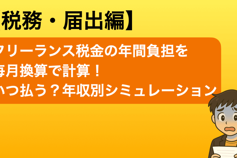 フリーランス税金の年間負担を毎月換算で計算!いつ払う?年収別シミュレーション