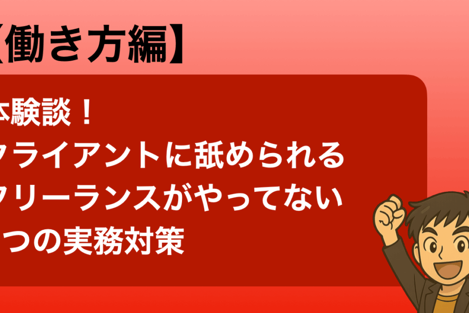 こんにちは。フリーランスひかるです。 「また値切られた…」… 続きを読む »【体験談】クライアントに舐められるフリーランスがやってない5つの実務対策