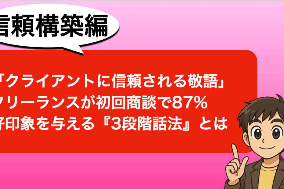 こんにちは。フリーランスひかるです。 初めてのクライアントとのオンライ… 続きを読む »「クライアントに信頼される敬語」フリーランスが初回商談で87%好印象を与える『3段階話法』とは