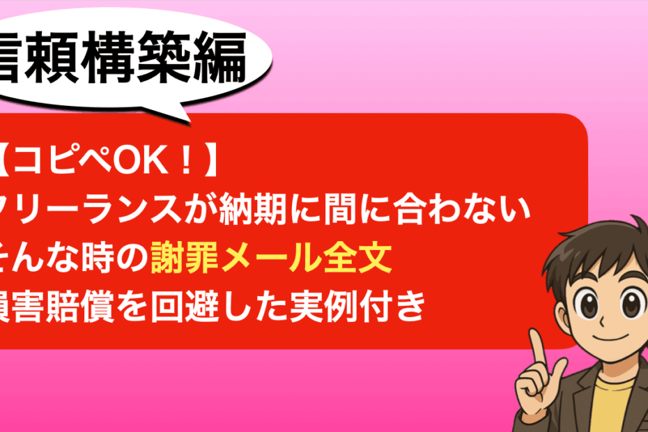 こんにちは。フリーランスひかるです。 「あと3日で納期なのに、全然終わ… 続きを読む »【コピペOK】フリーランスが納期に間に合わない時の謝罪メール全文|損害賠償を回避した実例付き