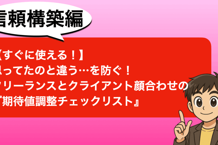 こんにちは。フリーランスひかるです。 「あれ、これって最初に聞いてた内… 続きを読む »【すぐに使える!】思ってたのと違う…を防ぐ!フリーランスとクライアント顔合わせの『期待値調整チェックリスト』
