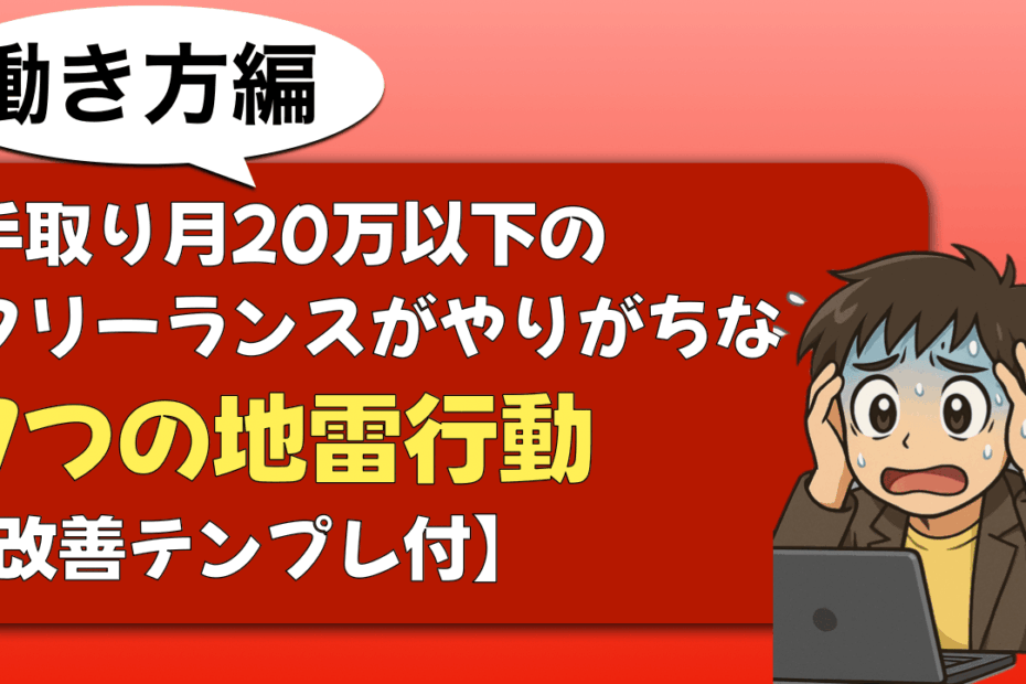 こんにちは。フリーランスひかるです。 「あれ、今月もこんなに働いたのに… 続きを読む »手取り月20万以下のフリーランスがやりがちな7つの地雷行動【改善テンプレ付】
