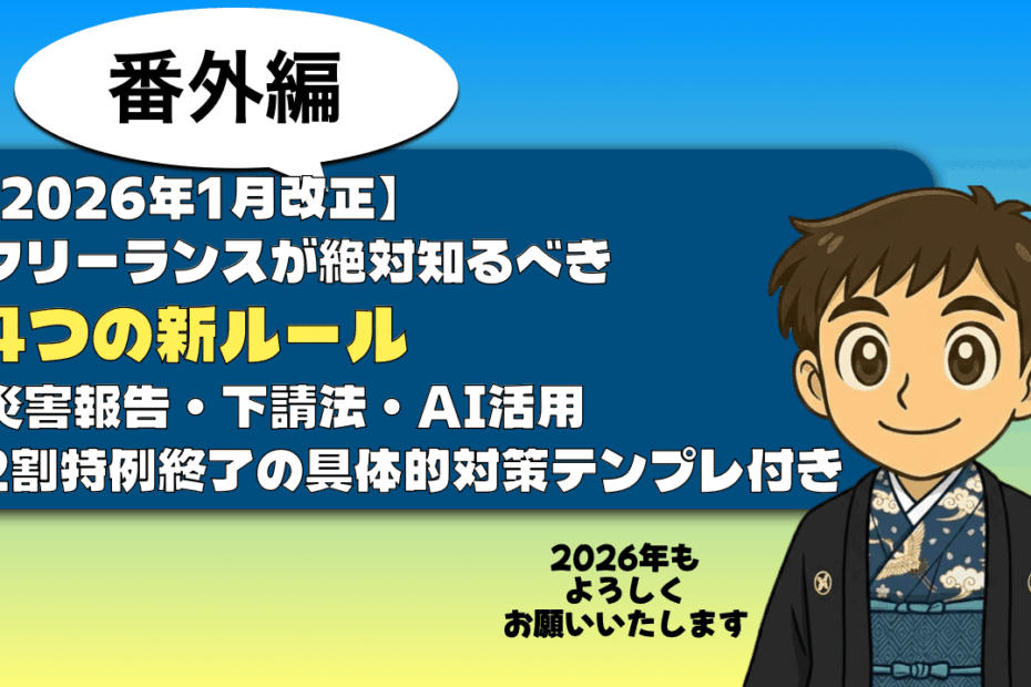 【2026年1月改正】フリーランスが絶対知るべき4つの新ルール|災害報告・下請法・AI活用・2割特例終了の具体的対策テンプレ付き