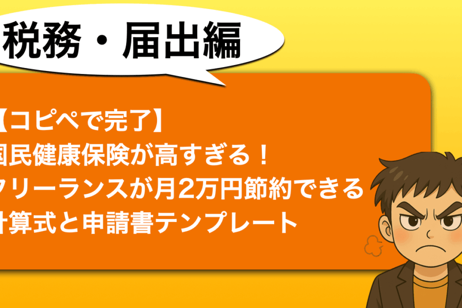 こんにちは。フリーランスひかるです。 会社を辞めてフリーランスになった… 続きを読む »【コピペで完了】国民健康保険が高すぎる!フリーランスが月2万円節約できる計算式と申請書テンプレート