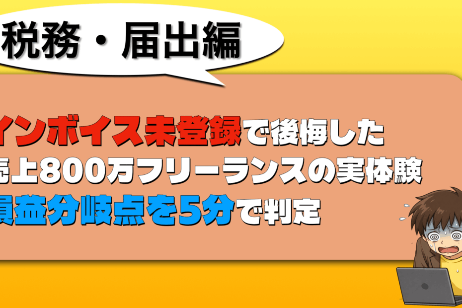 こんにちは。フリーランスひかるです。 「売上1000万以下だし、インボ… 続きを読む »インボイス未登録で後悔した売上800万フリーランスの実体験|損益分岐点を5分で判定
