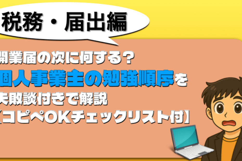 こんにちは。フリーランスひかるです。 開業届を提出した翌月、私は税務署… 続きを読む »開業届の次に何する?個人事業主の勉強順序を失敗談付きで解説|コピペOKチェックリスト付