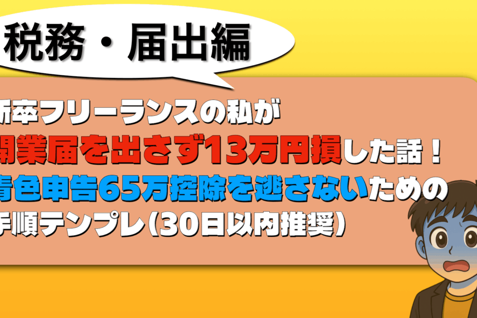 新卒フリーランスの私が開業届を出さず13万円損した話|青色申告65万控除を逃さないための手順テンプレ(30日以内推奨)