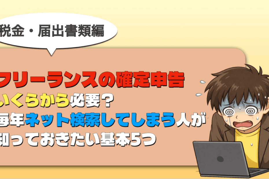 この記事は、フリーランス実務資格「個人事業経営士・CFQ」監修のもと作… 続きを読む »フリーランスの確定申告:いくらから必要?毎年ネット検索してしまう人が知っておきたい基本5つ